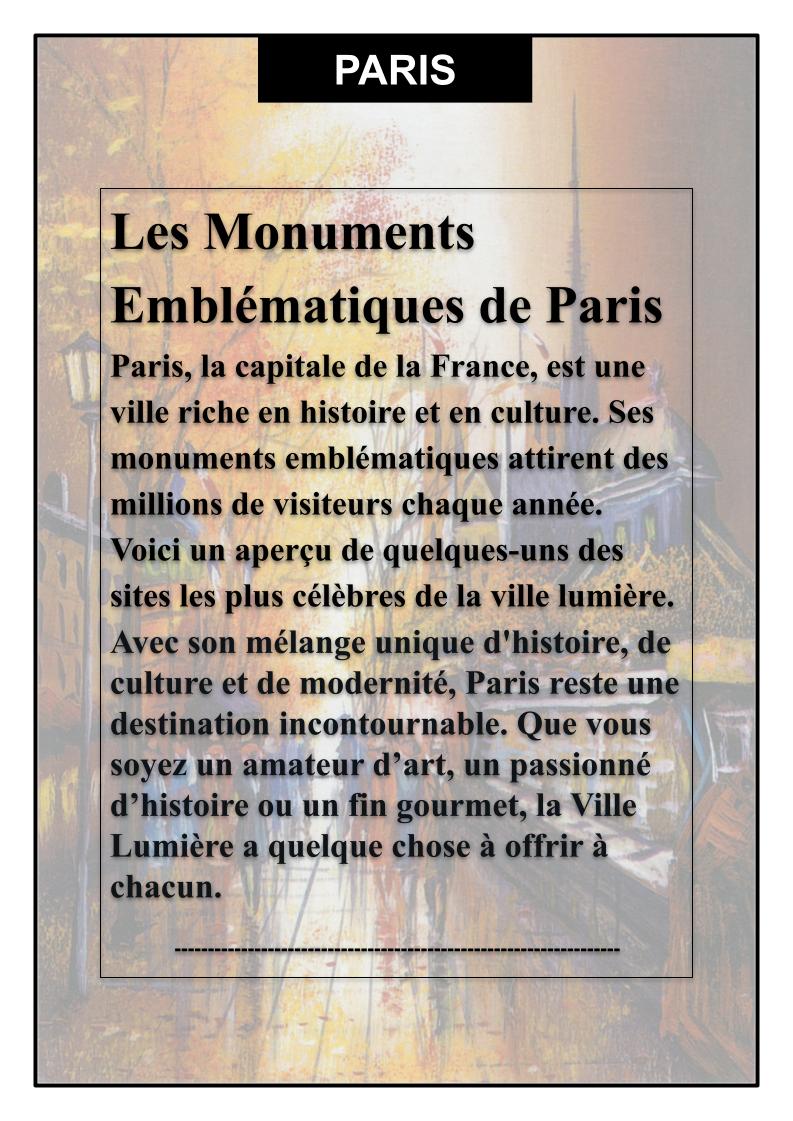 Paysages, Marines, Monuments et Natures mortes sont les principaux thèmes qui caractérisent et séduisent notre quotidien.